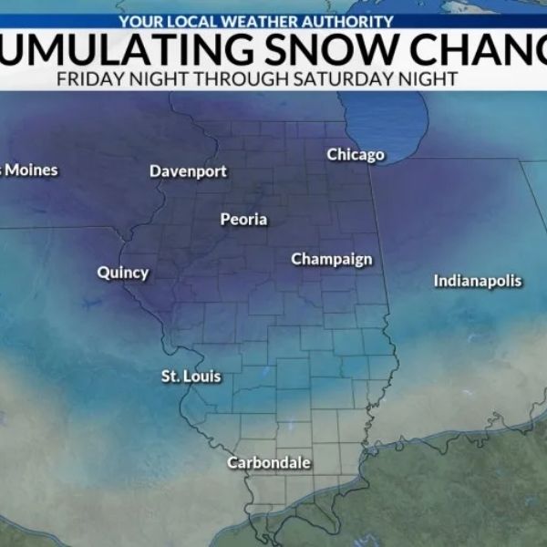 The NWS notes that there is an increasing signal for the possibility of five inches or more in west-central Illinois. If trends continue, a winter storm watch may be issued within the next 24 hours.