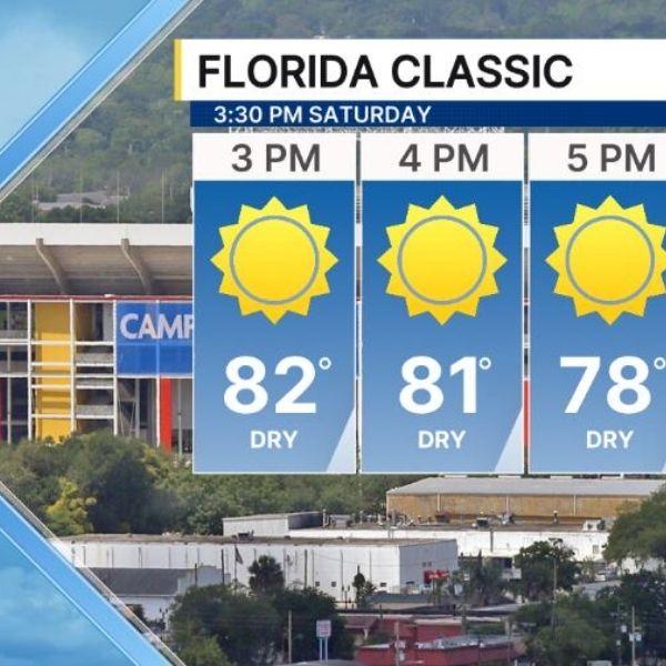 Snow chances increase significantly near Jacksonville, where there is a 70% probability of at least three inches of snow.